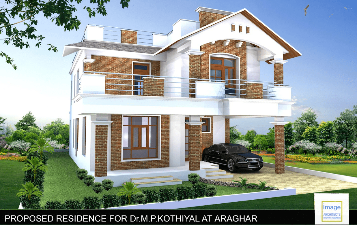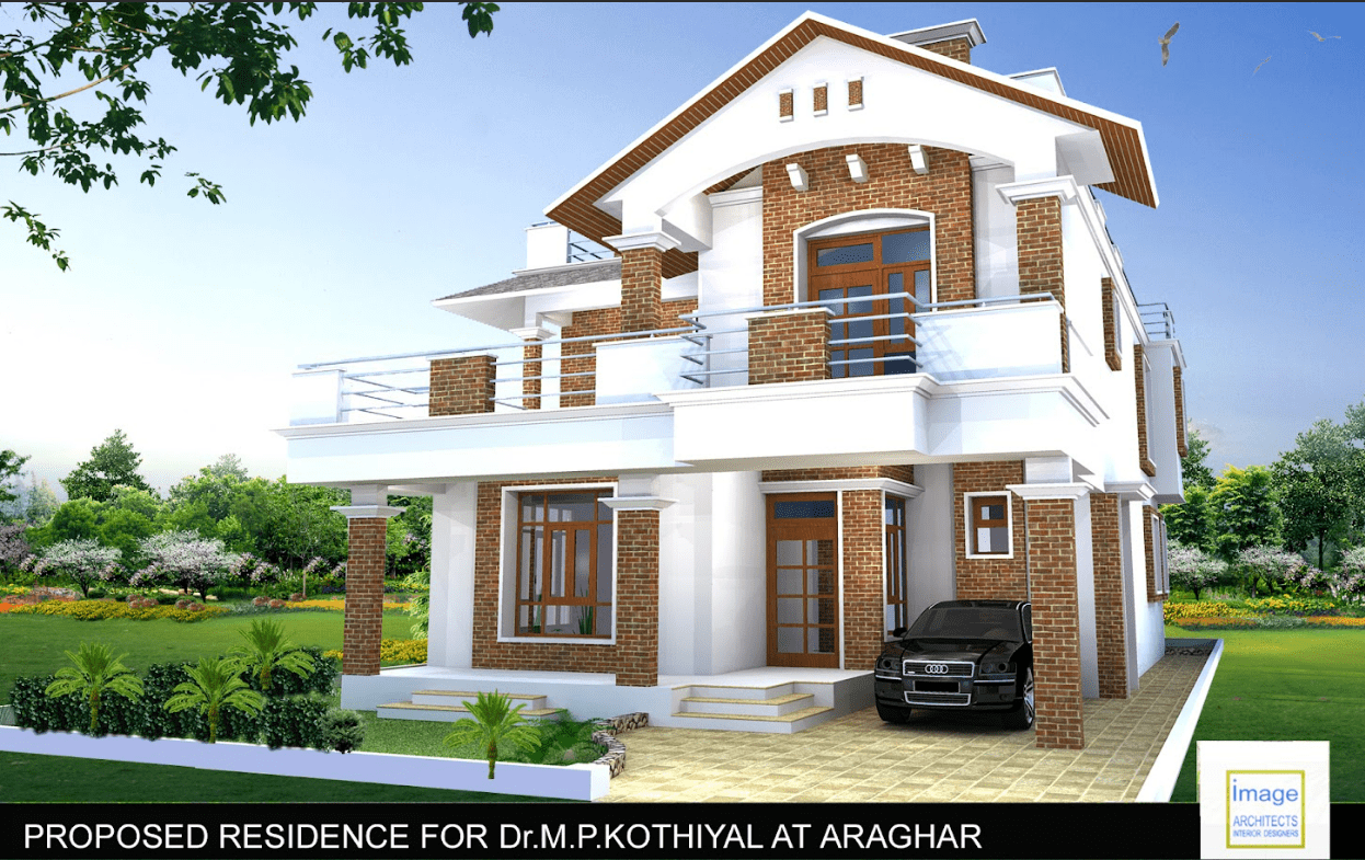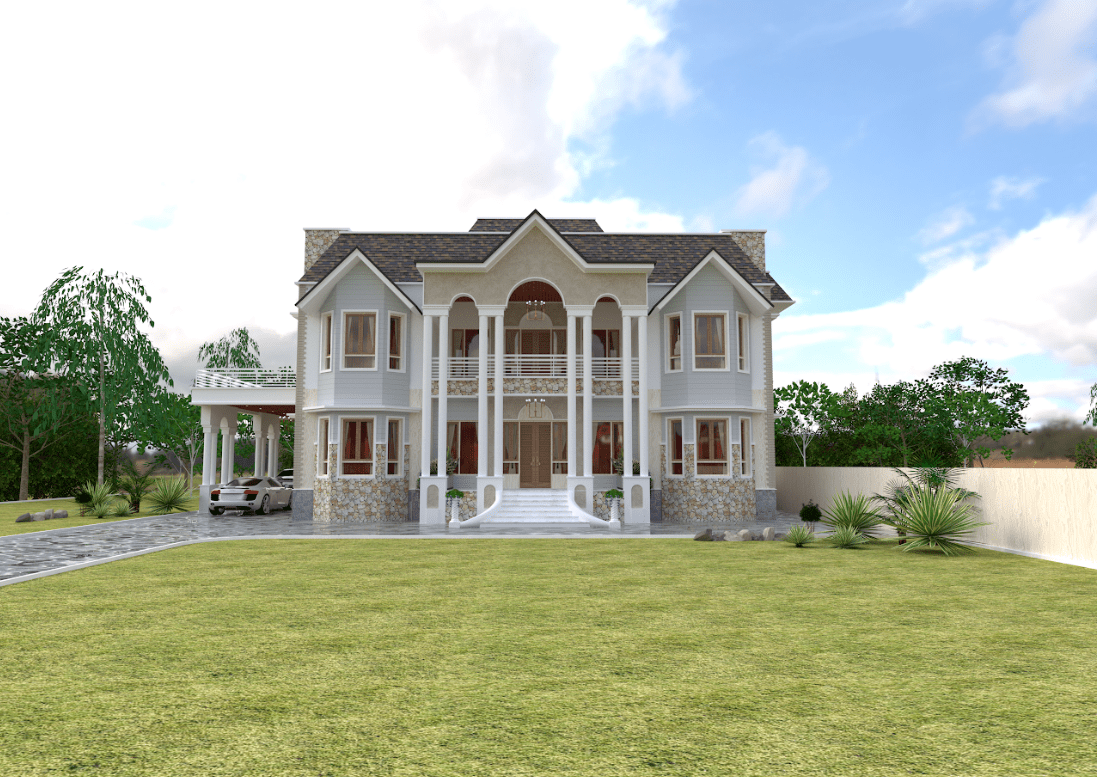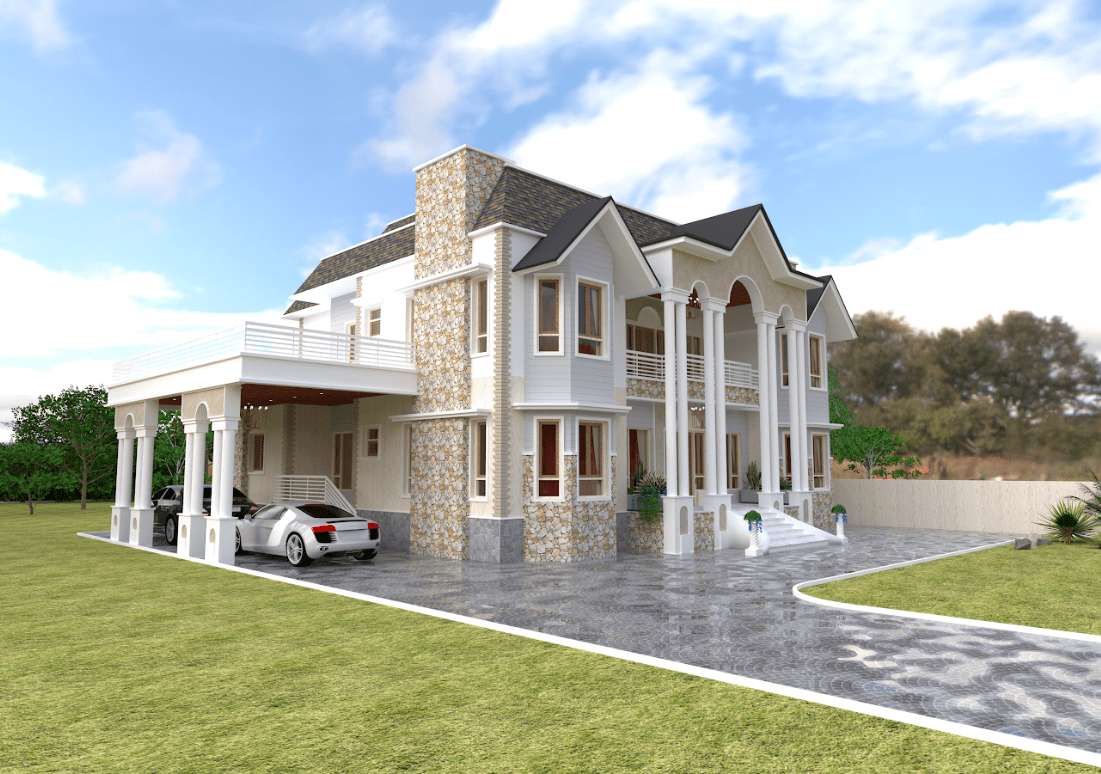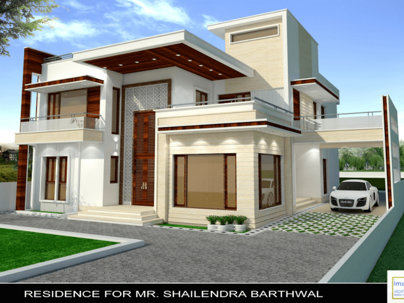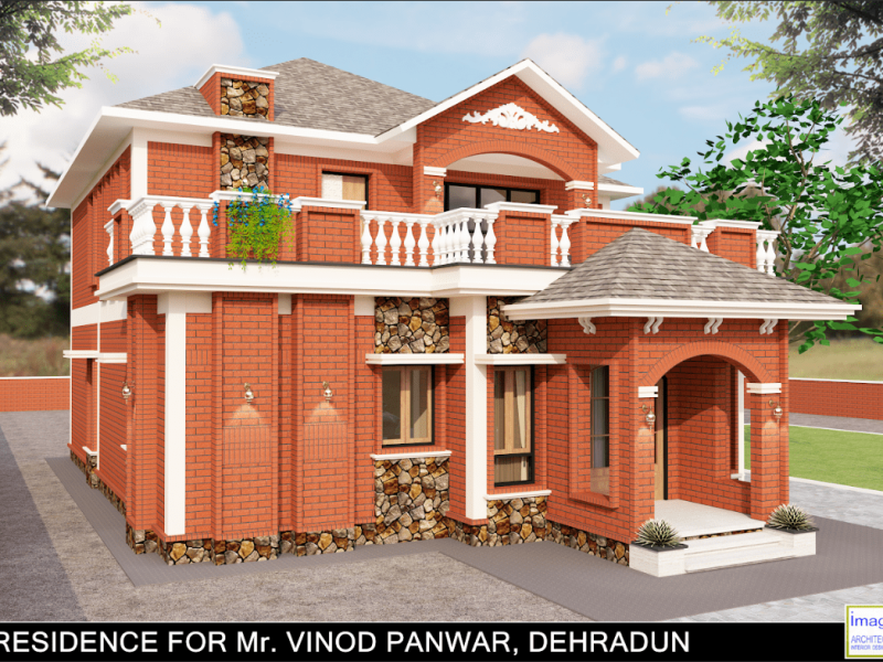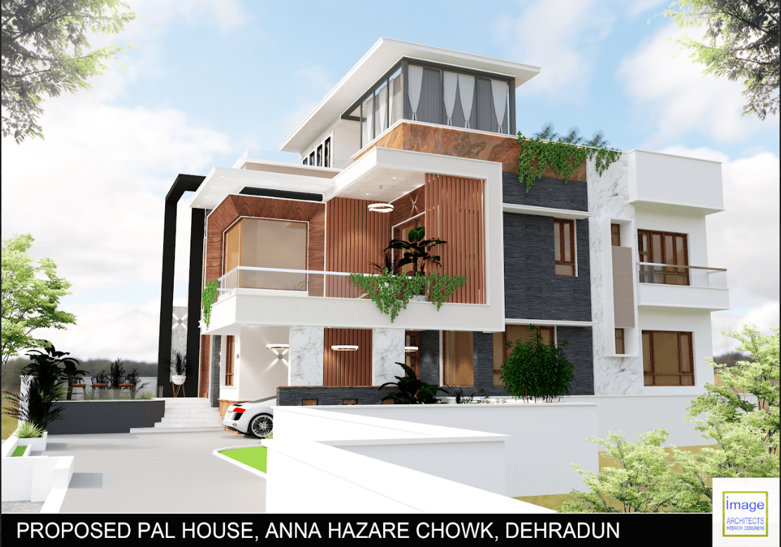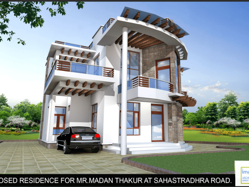 This contemporary house design with use of castle stone work creates a unique and striking